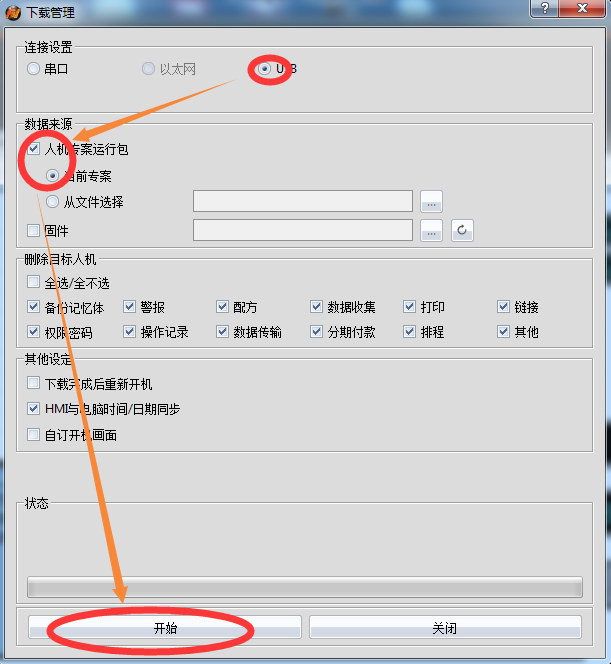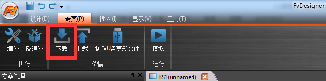 2.打開FvDesigner 軟件,編譯無誤后,點擊頂部狀態(tài)欄專案>>下載,進入管理界面如下圖2,按照圖3所示的進行操作下載。