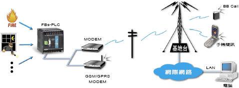 透過(guò)MODEM作LINK FBs-PLC能夠由階梯圖程式自行控制MODEM撥號(hào),與遠(yuǎn)方之MODEM與PLC作Link,無(wú)需操作人員或電腦介入,而達(dá) 成諸如總公司對(duì)各分工廠每日總生產(chǎn)量之自動(dòng)匯整或自動(dòng)資料搜集、警、報(bào)異?;貓?bào)等監(jiān)控工作。