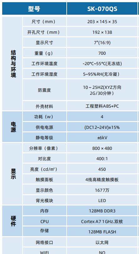 SK-070QS 顯控觸摸屏