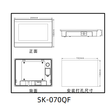 SK-070QF 外觀尺寸 開孔尺寸圖