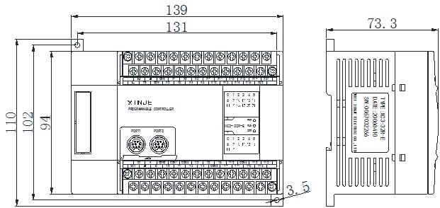 14點NPN輸入,10點繼電器(R)或晶體管(T)或繼電器晶體管混合(RT)輸出AC220V(E)或DC24V(C)電源
